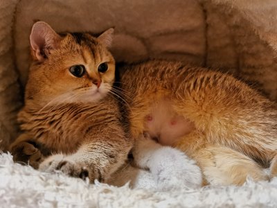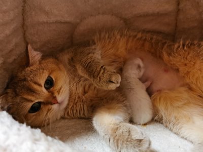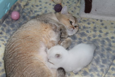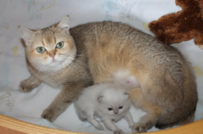 Schwierigkeiten trinkt er inzwischen ganz brav bei Mama und hat schon mächtig